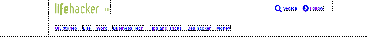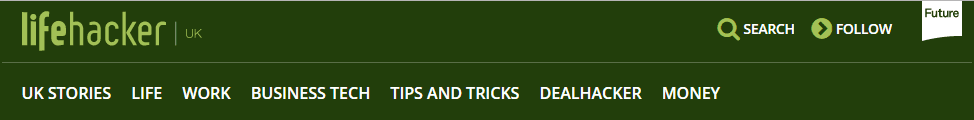 I love the website lifehacker, it’s always been a useful resource for different technical challenges. I also love its sister sites, gizmodo, kotaku and techradar. Again all good resources for info, but what I really love is their designs. It’s simple and minimalist, but also delivers a good amount of rich content and still conveys a brand. I just wrote “their designs” but really it’s just one single design. Let’s check out one of their richest components, the header.