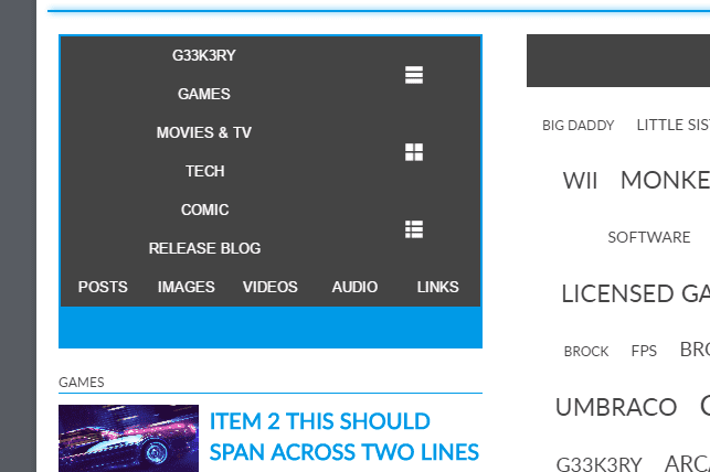 Note that all the consoles and games are free to exist and take up as much space within the realms of their shelf. But it’s the shelf that controls the layout of this impressive gaming collection! (including cable management…) Remember the grid system isn’t all that different from a set of shelves. You can code chaos to your hearts content…and your columns keep the chaos compartmentalized.