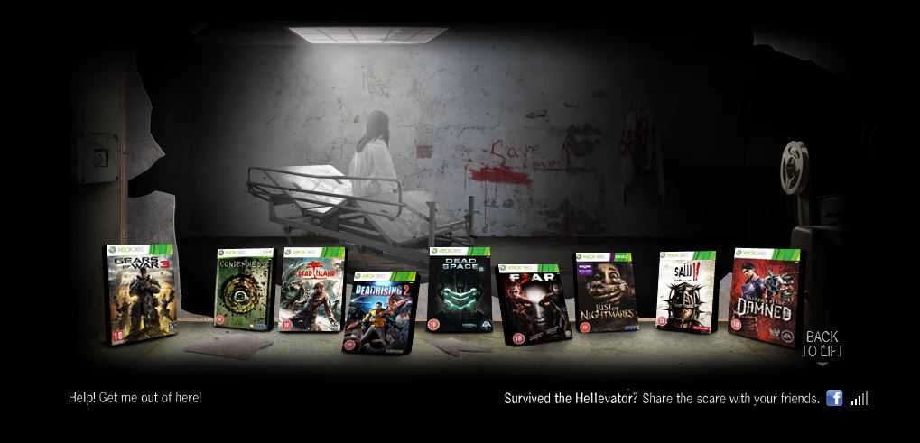 For Xbox.com's Halloween marketing campaign, I helped build their Silverlight Halloween experience (called the 'Hellevator').